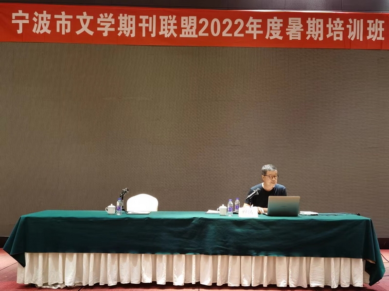 8月1日—5日,2022年度宁波市文学期刊联盟暑期培训班顺利举行。来自全市的60余名作家及编务人员参加本次培训。此次培训由《文学港》杂志社、宁波市作家协会共同举办。邀请了穆涛、霍俊明、钟求是、沈苇、南志刚、钱茂伟等6位国内名家及刊物主编前来授课。培训期间,学员们积极参与互动,学习氛围浓厚,对老师们的精彩授课一致给予好评。