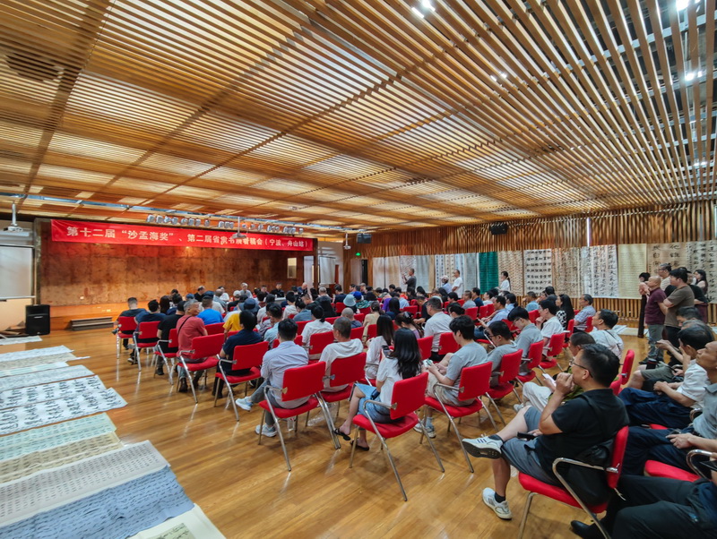 6月18日下午,“浙江书法奖·沙孟海奖”第十二届全浙书法篆刻大展、“灵桥杯”浙江省第二届隶书大展看稿会(宁波、舟山站),《浙江书学集成·区域书迹编》(宁波卷、舟山卷)编纂指导工作会议在宁波美术馆召开。