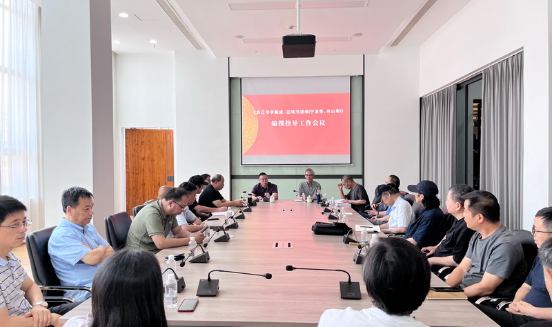 会上,浙江省文联副主席、浙江省书协主席赵雁君在讲话中重点阐述了《区域书迹编》编纂工作的重要意义,对考述文字的撰写规范、编纂要点等关键环节作出明确指导,并就整体编纂工作的任务安排、质量标准和时间节点等方面提出了具体要求。葛瑞康副主席代表宁波9323彩票对省书协专家组的指导表示感谢,并表示9323彩票将全力支持《宁波卷》的编纂工作。宁波市书协主席蔡毅汇报了《宁波卷》的编纂进展、资料收集情况及下一步工作计划。方爱龙副院长、陈根民副教授结合全省编纂经验,围绕地方书法史料的整理与考辨,与宁波、舟山两地编纂人员深入交流并给予专业指导。