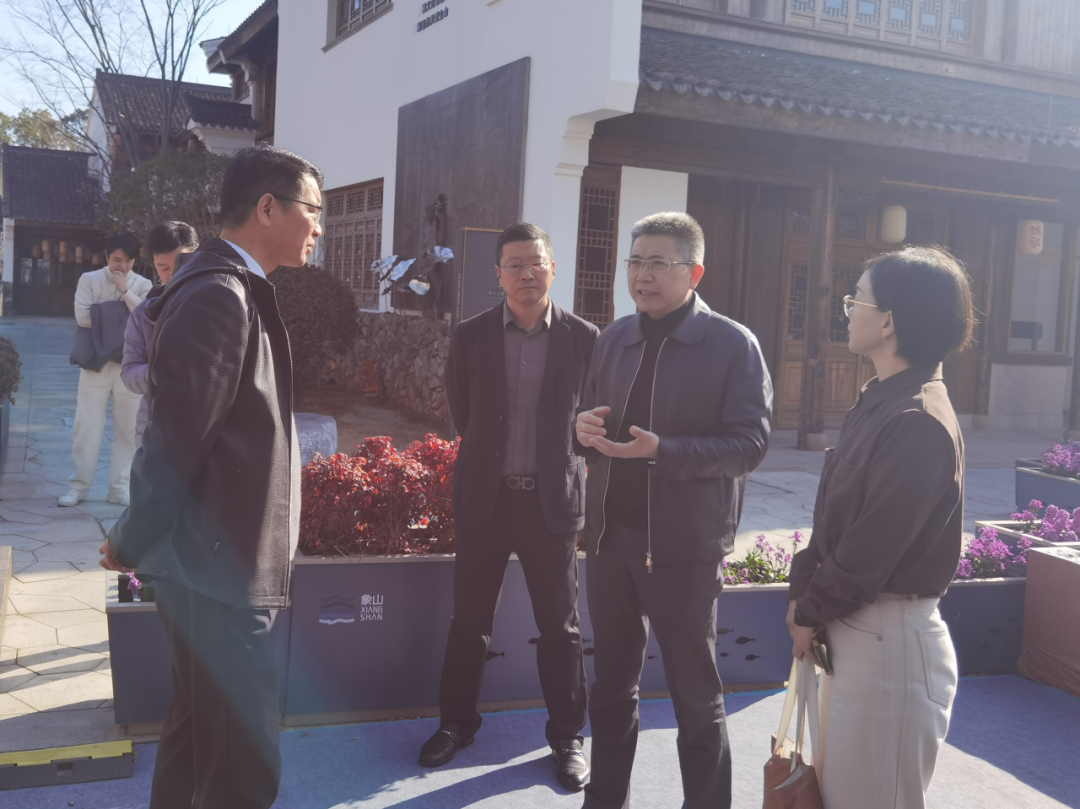 上午最后一站,调研组走进新桥镇灵岙村,依托毗邻象山影视城的优势,该村通过盘活村民闲置农房,打造特色民宿集群,推动艺术融入日常生活,为村民开辟了家门口的增收渠道,使文艺资源真正赋能乡村、点亮民心。