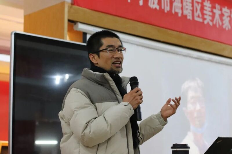 2025年在全国性展览入选及省级展览中获奖的张国平、王馨宁、金用院、熊意等骨干作者,现场分享了各自的创作心得与思考,他们的作品题材丰富、形式多样,展现了海曙美术工作者扎实的创作功力与活跃的艺术思维。