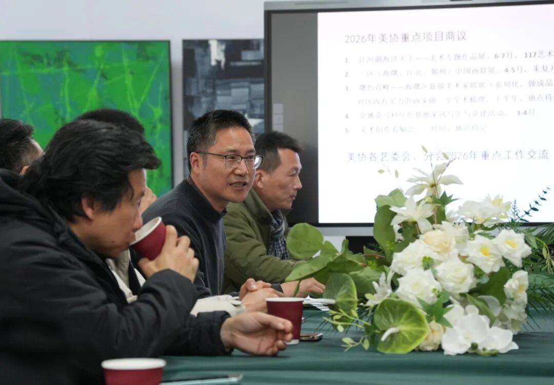 理事会上,全体理事听取了2025年协会完成的重点项目和2026年项目申报情况汇报,重点就“江河湖海济天下”美术作品展、三区美协中国画联展及曙色青峰展等项目实施作了讨论交流。
