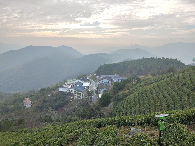仪式后,作家们在酒店负责人徐依的带领下探访了梅峰茶园。海拔600多米的梅岭山峦叠翠,云雾缭绕,梯田式茶园如绿毯铺展。昼夜温差大、生态优良,使这里成为“宁波市最美茶园”,也是优质红茶的生产地。