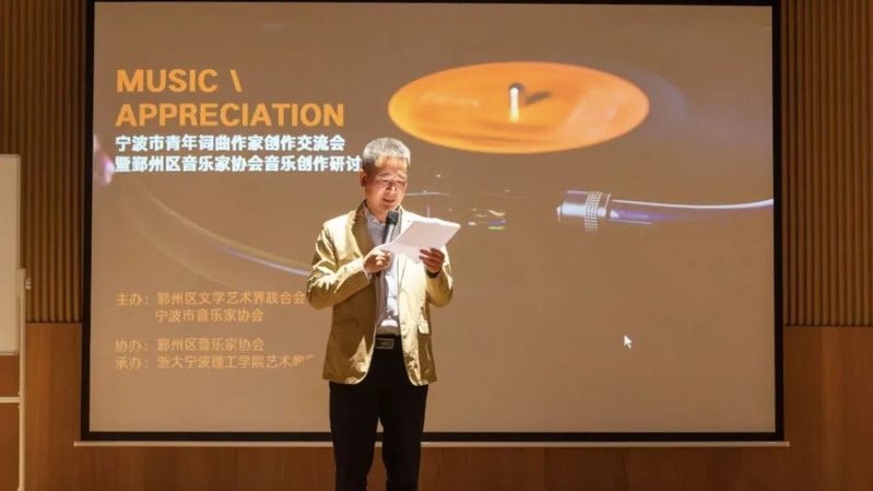 胡冬平在致辞中表示,希望以此次研讨会为契机,引导广大创作者深入挖掘宁波丰富的本土文化元素,积极探索新媒体时代的音乐创作手法,推动传统与现代有机融合,创作出既富有艺术感染力又具备传播力的优秀作品,真正践行习近平总书记提出的“让文艺的百花园永远为人民绽放”的重要理念。