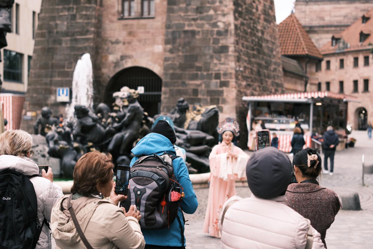 法国鲁昂老城内“梁祝”越音缠绵,德国纽伦堡城堡前穆桂英飒爽亮相,西班牙格拉纳达阿尔罕布拉宫观景台上折扇翻飞......