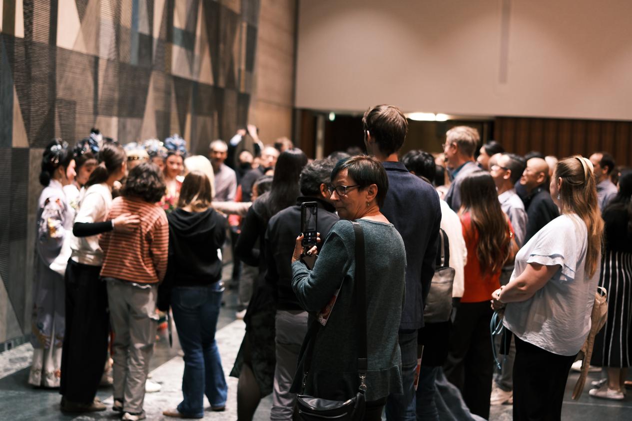 德国当地市民看完表演后称赞演员唱腔优美、妆造漂亮,并热情追问剧团的下一场演出会在何处。还有不少观众是第一次观赏到越剧,好奇地询问剧团来自哪里。
