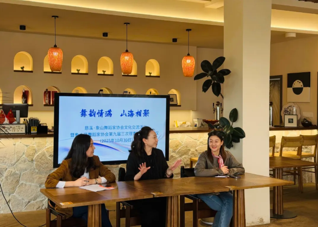 在活动中,慈溪市舞协主席胡丹与象山县舞协主席蒋莉分别介绍了各自协会的发展历程、近年成果与本次交流的初衷。双方围绕创作实践与人才培养等核心议题畅所欲言,分享了各自的经验与思考。