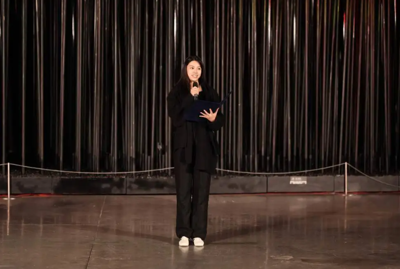 本次跨媒介沉浸式现代舞展演执行编导沈音含随后登台,就作品创作理念与艺术构思进行了深入分析,阐释了“仰山”与“葵”在身体语言与空间叙事中的象征意义与表现方式。