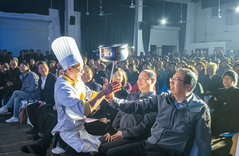 越剧经典选段《丹心照》《官人好比天上月》韵味悠长,专业演绎让戏迷过足瘾;杂技《功夫厨房》将日常场景与惊险技巧相结合,创意十足;小品《有缘就是福》贴近生活、笑点密集,传递出邻里和睦的温暖正能量;器乐合奏《回家》旋律悠扬;女声独唱《灯火里的中国》以深情演绎勾勒家国情怀,引发全场共鸣;魔术《魔幻》表演神秘莫测,与观众互动热烈,将现场气氛推向又一个高潮。