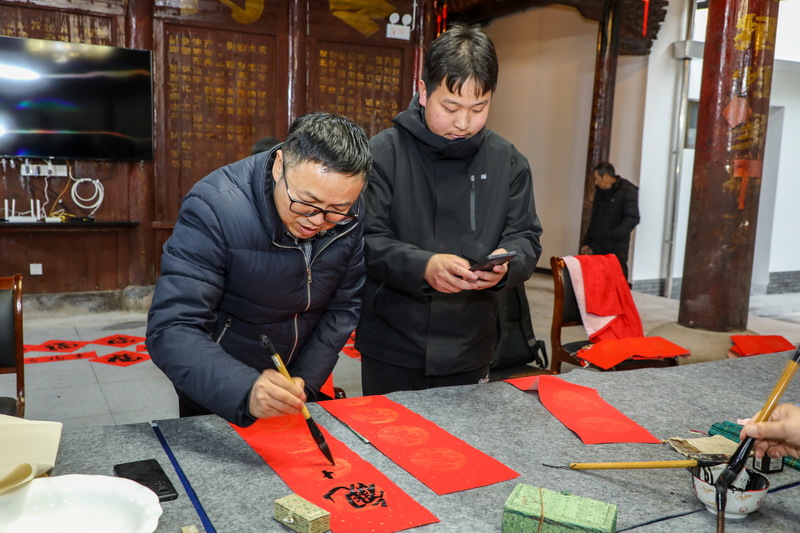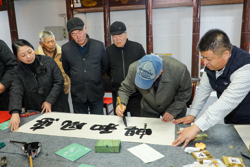 历时近两个多小时的笔会,书画家们共创作了近二十幅书画作品。这些作品或赠予村委留存,或现场赠与村民。现场还为即将到来的新年写了七十余幅福字及对联,增添了浓厚的文化气息。“这样的活动把艺术送到家门口,拿到了这么好的作品我感到非常荣幸。”拿到心仪作品的村民满脸喜悦。